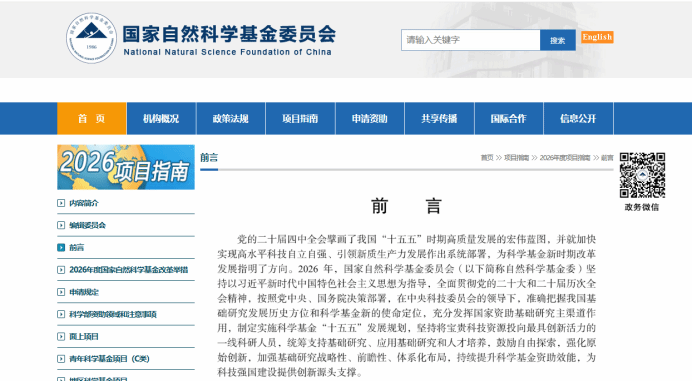 1月19日,国家自然科学基金委员会正式发布《2026年度国家自然科学基金项目指南》